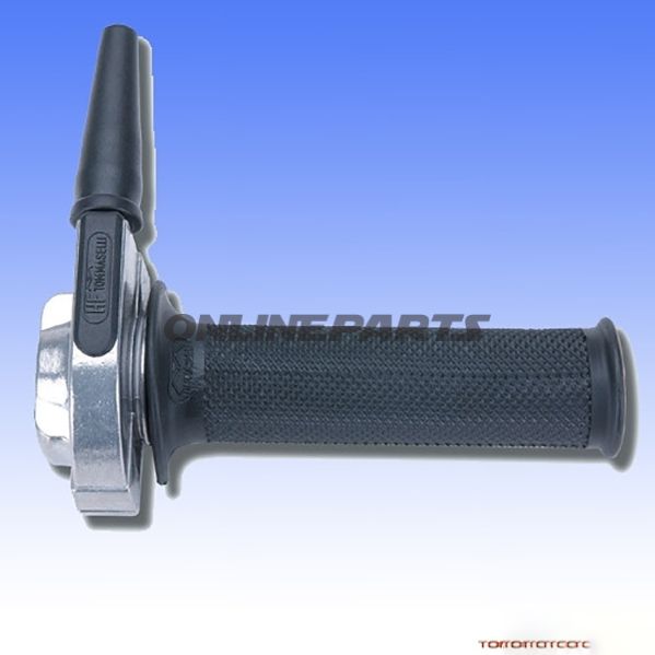 - Funktion: Mechanischer Einzugs-Drosselmechanismus für eine Kabelführung (ein Gaszug). Das Gasdrehgriff überträgt die Bewegung direkt auf den Gaszug über ein rotierendes Gehäuse, was eine lineare und präzise Reaktion in Bezug auf die Bewegung des Griffs ergibt.