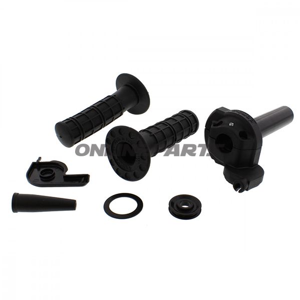 - Wird mit linksseitigem Griffgummi geliefert, sodass rechtsseitig nach Wunsch montiert werden kann (Standard-Gasposition rechts).