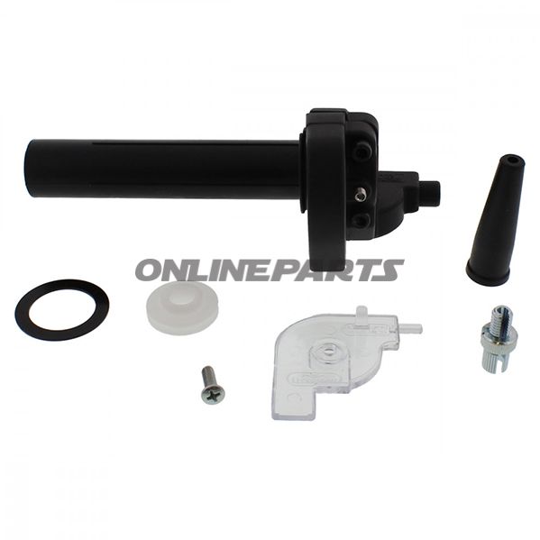 - Da der Gashandgriff ohne Gummi geliefert wird, muss der passende Griff und ggf. Endanschlag am Lenker separat installiert werden.
