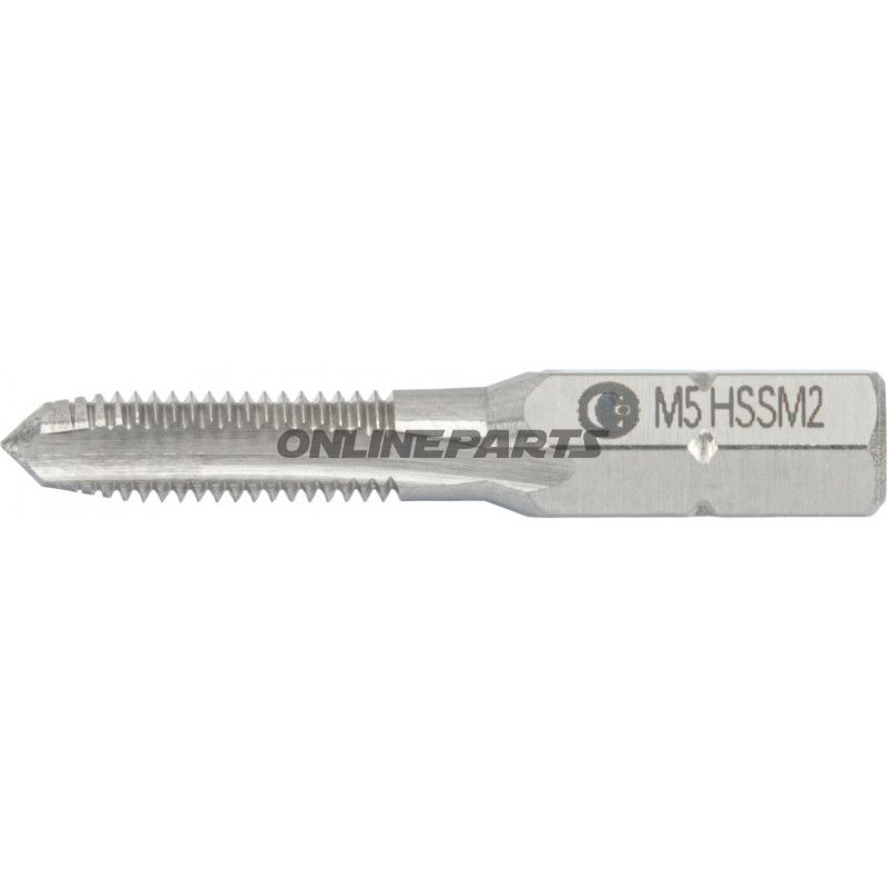 Kurzfassung: 1/4" Gewindebohrer für M5 x 0,8 in HSS-G (M2), Länge 36 mm, Antrieb 1/4" Sechskant. Kennzeichnungsnummer über MPN 637.01.10 und GTIN 4037374396541.