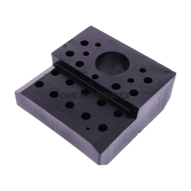 Das Gleitstück besteht aus verschleißfestem Kunststoff, ausgewählt, um wiederholte Bewegungen und Belastungen in Hebe-Anwendungen standzuhalten. Die Eigenschaften des Kunststoffs umfassen geringe Reibung und Beständigkeit gegen mechanischen Verschleiß sowie geringe Beeinflussung durch übliche Werkstattchemikalien. Die Materialwahl bedeutet, dass das Stück primär als tragendes/Kontakt-Sicherungsbauteil fungiert und nicht als strukturell tragendes Element in der Hauptkonstruktion der Schere.