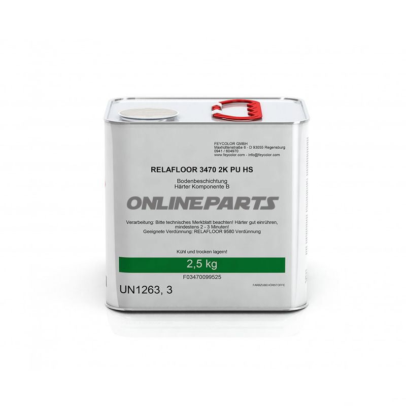 - Speziell für RELAFLOOR 2K PU HS Bodenprodukte von Feycolor konzipiert. Verwenden Sie nur den empfohlenen Härter, um korrekte Aushärtezeiten und mechanische Eigenschaften sicherzustellen.