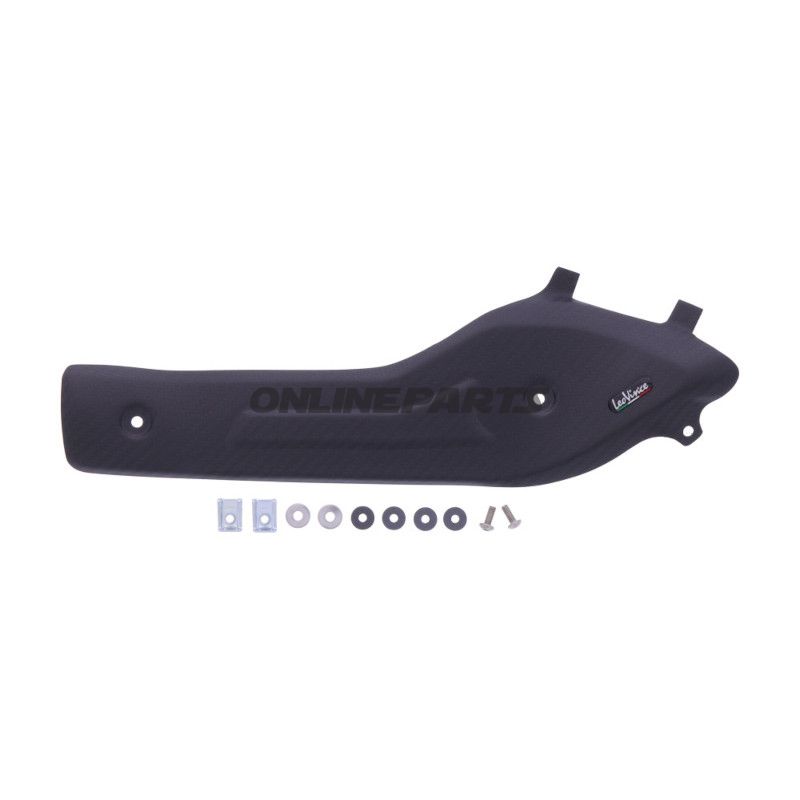 Der Wärmeschutz von LeoVince ist darauf ausgelegt, sowohl Funktionalität als auch Ästhetik für Ihr Motorrad zu bieten. Dieses Produkt besteht aus Kohlenstoff, was eine leichte und langlebige Lösung zum Schutz der Motorradteile vor Wärme gewährleistet. Der Wärmeschutz wird typischerweise in der Nähe des Auspuffsystems des Motors platziert, wo er effektiv vor der Hitze schützt, die während der Fahrt erzeugt wird.