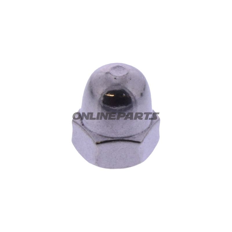 Die Helm-Mutter, auch bekannt als Kappenmutter oder auf Deutsch "Hutmutter", ist ein wichtiges Bauteil, das verwendet wird, um verschiedene Teile des Motorrads zu sichern und zu stabilisieren. Diese Mutter findet sich typischerweise am Lenker und Rahmen des Motorrads, wo sie dazu beiträgt, kritische Komponenten während des Betriebs an ihrem Platz zu halten.