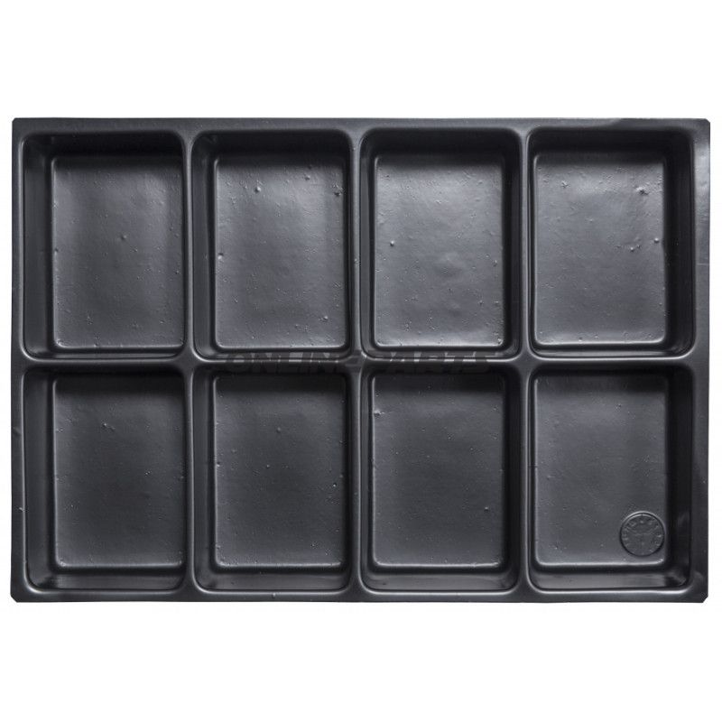 Der Einsatz ist darauf ausgelegt, durch acht getrennte Räume zu entstehen, die durch kipplige, abgerundete Kunststoffwände gebildet werden. Er fungiert als Insert, das einen bestehenden Behälter in kleinere, klar definierte Felder unterteilt, damit Kleinteile, Beschläge oder Werkzeuge getrennt und leicht zugänglich bleiben.