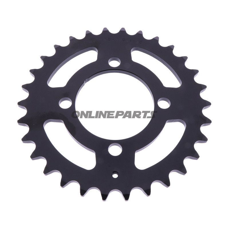 Das Hinterradzahnrad mit 30 Zähnen und Pitch 520 ist eine essentielle Komponente im Antriebssystem des Fahrzeugs. Dieses Zahnrad ist dafür ausgelegt, die Kraft vom Motor auf das Hinterrad zu übertragen und sorgt für eine effiziente Beschleunigung und Geschwindigkeitskontrolle. Es befindet sich an der Hinterachse und arbeitet eng mit der Kette zusammen, um die Leistung des Fahrzeugs zu optimieren.