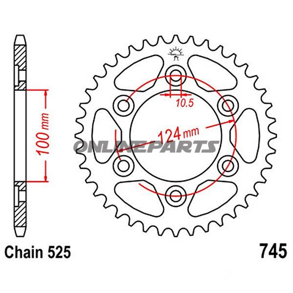 Am Hinterrad montiert, spielt dieses Zahnrad eine entscheidende Rolle im Antriebsstrang Ihres Motorrads, da es die Kraft des Motors mit minimalem Verlust auf das Hinterrad überträgt. Das präzise Zahnprofil sorgt für optimalen Kontakt mit der Kette, was den Verschleiß reduziert und sowohl die Lebensdauer der Kette als auch des Zahnrads verlängert.