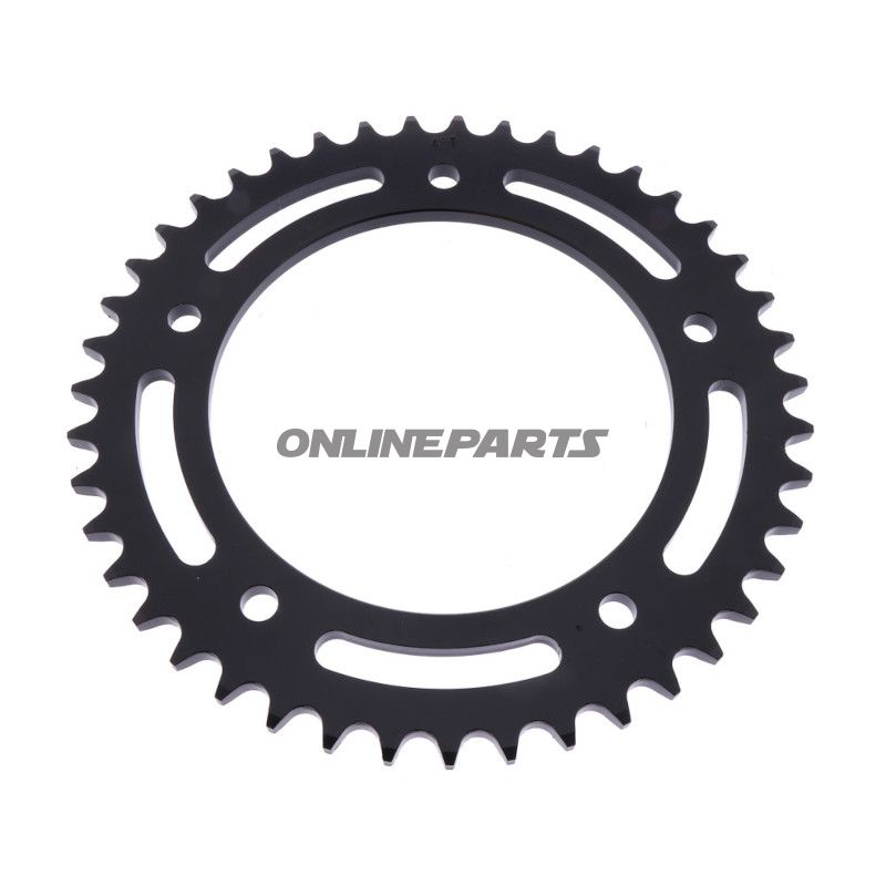 Zahnrad 43Z mit einem Pitch von 525 mm und einem Innendurchmesser von 140 mm ist darauf ausgelegt, eine zuverlässige und effiziente Kraftübertragung vom Motor zum Hinterrad von Motorrädern zu gewährleisten. Dieses Zahnrad ist eine zentrale Komponente im Kettenantrieb und befindet sich auf der Rückseite des Motorrads, wo es als Teil des gesamten Antriebssystems fungiert. Eine korrekte Funktion des Zahnrads ist entscheidend, um eine gleichmäßige Fahrt und optimale Leistung aufrechtzuerhalten.