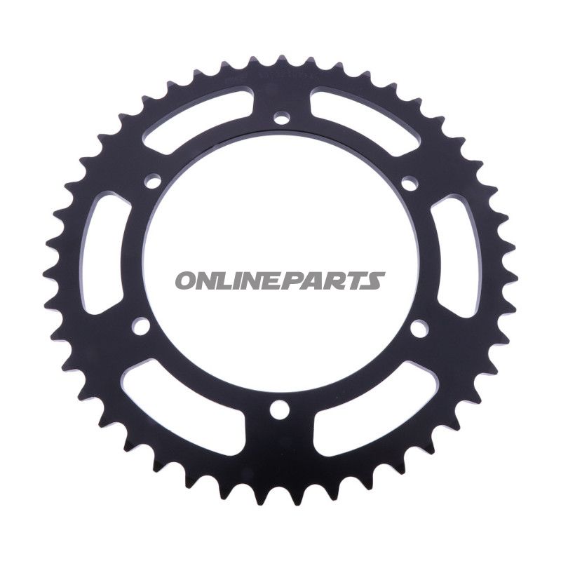 Dieses Zahnrad ist dafür konzipiert, am Hinterrad des Motorrads montiert zu werden, wo es eine entscheidende Rolle bei der Übertragung der Kraft vom Motor auf das Rad spielt. Es gewährleistet eine effiziente Energieübertragung, die für die Leistung und Fahreigenschaften des Motorrads unerlässlich ist.