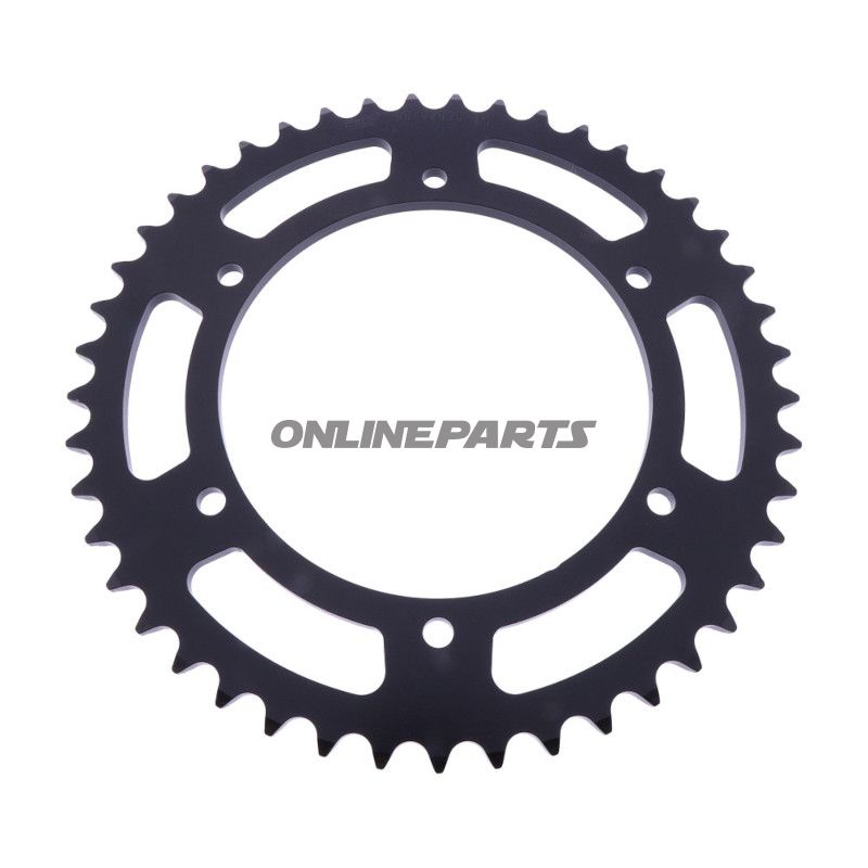 Das Material des Kettenrades ist Stahl, was eine hohe Verschleißfestigkeit und lange Lebensdauer gewährleistet. Die schwarze Oberfläche macht es nicht nur ästhetisch ansprechend, sondern hilft auch, es vor Rost und Korrosion zu schützen. Dieses Kettenrad ist darauf ausgelegt, den anspruchsvollen Bedingungen standzuhalten, denen Motorräder häufig ausgesetzt sind, einschließlich Vibrationen und Belastungen durch die Kraftübertragung.