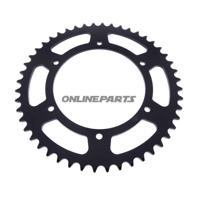 Dieses Produkt ist aus Stahl gefertigt, was eine Balance zwischen Stärke und Haltbarkeit bietet. Das Stahlmaterial stellt sicher, dass das Zahnrad den Belastungen, die beim Fahren auftreten, standhalten kann, während es seine Form und Funktion über die Zeit beibehält. Die schwarze Oberflächenbehandlung sorgt nicht nur für ein ästhetisches Aussehen, sondern schützt auch vor Rost und Abnutzung. Das Hinterradzahnrad hat einen Innendurchmesser von 136 mm, einen Lochkreis von 156 mm und 6 Montageschrauben mit einem Schraubenlochdurchmesser von 8,5 mm, was die Installation erleichtert und eine stabile Verbindung zum Antriebssystem des Motorrads gewährleistet.