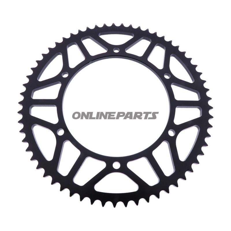 Das Kettenrad ist aus Stahl gefertigt, was ihm eine solide Haltbarkeit und Widerstandsfähigkeit gegenüber Abnutzung verleiht, die typischerweise beim Fahren auftritt. Das Stahlmaterial sorgt dafür, dass das Kettenrad den Kräften standhalten kann, die während der Beschleunigung und Verzögerung erzeugt werden, was besonders wichtig für Motorräder ist, die sowohl für Straßen- als auch für Offroad-Fahrten verwendet werden. Die schwarze Oberfläche sorgt nicht nur für ein ästhetisches Aussehen, sondern hilft auch, Rost und Korrosion zu verhindern, was die Lebensdauer des Bauteils verlängern kann.