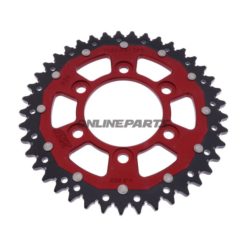 Kettenrad ZF Sprockets ZFD-1489-41-RED Kettenrad für Teilung 525. Gefertigt aus Duraluminium. Innendurchmesser 080 mm, Lochkreis 104 mm. Passend für mehrere Modelle – Modell/Baujahr in der Liste prüfen.