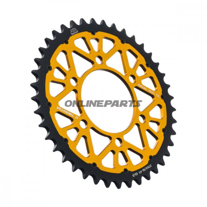 Die JT Twinstar Zahnräder sind aus einer Stahl/Aluminium-Hybrid gefertigt, was eine Kombination aus Stärke und geringem Gewicht bietet. Das Innere dieses Zahnrads besteht aus einer speziellen Aluminiumlegierung, die etwa 11-mal stärker als reines Aluminium ist und fast das Festigkeitsniveau von Stahl erreicht. Dieses Design stellt sicher, dass das Zahnrad sowohl langlebig als auch leicht ist, was zu einer effizienteren Leistung beiträgt.