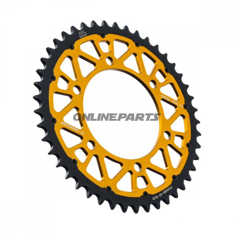 JT Twinstar Zahnräder haben sich als etwa dreimal langlebiger als traditionelle Aluminiumzahnräder erwiesen und wiegen 50% weniger als Stahlzahnräder. Dies macht es zu einer idealen Wahl für diejenigen, die eine leichte Konstruktion mit Haltbarkeit kombinieren möchten. Das Zahnrad ist außerdem mit einer goldenen Farbe beschichtet, die nicht nur das ästhetische Erscheinungsbild verbessert, sondern auch hilft, es vor Rost und Abnutzung zu schützen.
