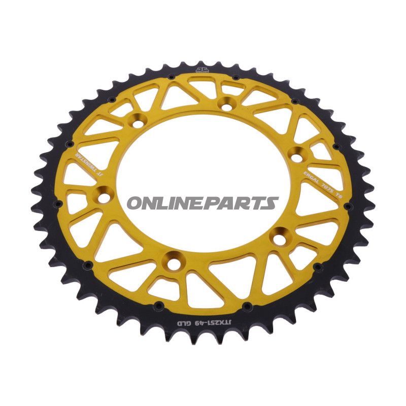 JT Twinstar Kettenräder sind so konzipiert, dass sie Stärke und geringes Gewicht kombinieren, was sie sowohl für Offroad- als auch für Motocross-Anwendungen geeignet macht. Dieses Zahnrad mit 49 Zähnen und einer Teilung von 520 mm ist aus einer Stahl/Aluminium-Hybrid gefertigt, die eine optimale Balance zwischen Haltbarkeit und Gewichtseinsparung bietet.