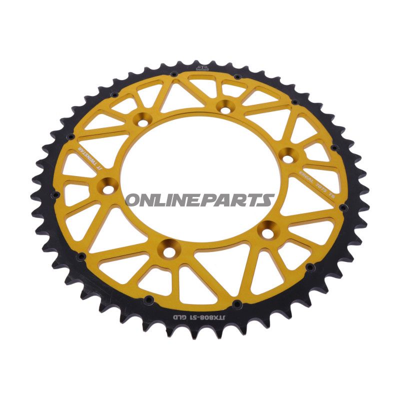Kettenrad JT Sprockets JTX808.51GLD 51 Z, Teilung 520 Passend für mehrere Modelle – Modell/Baujahr in der Liste prüfen. Aufbau: stahlzahnrade med aluminiuminnenring, Innendurchmesser 126 mm.