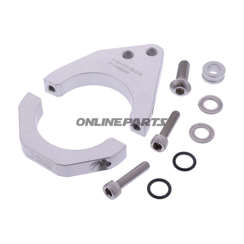 Produkt: Cleste Gabelklemme YSS 50 mm für Lenkkopfdämpfer. Dieser Halter ist von YSS hergestellt (MPN: 789.24.00, GTIN: 8859253900818) und für die mechanische Befestigung eines Lenkkopfdämpfers am Gabelrohr vorgesehen.