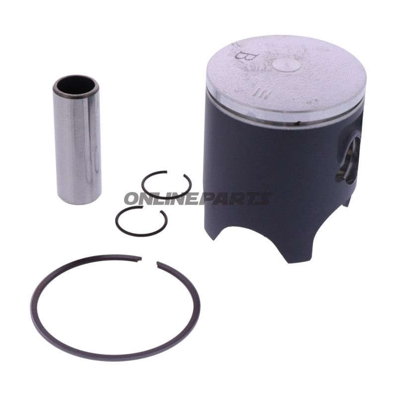 Die Materialien in diesem Kolbensatz sind sorgfältig ausgewählt, um hohe Qualität und lange Lebensdauer zu gewährleisten. Die Kolben sind gegossen, was eine gleichmäßige Struktur und Stärke bietet, die den anspruchsvollen Bedingungen, denen ein Motocross-Motor ausgesetzt ist, standhalten kann. Der Kolbensatz wird komplett mit Ringen, Stiften und Clips geliefert, was die Installation einfach und schnell macht.