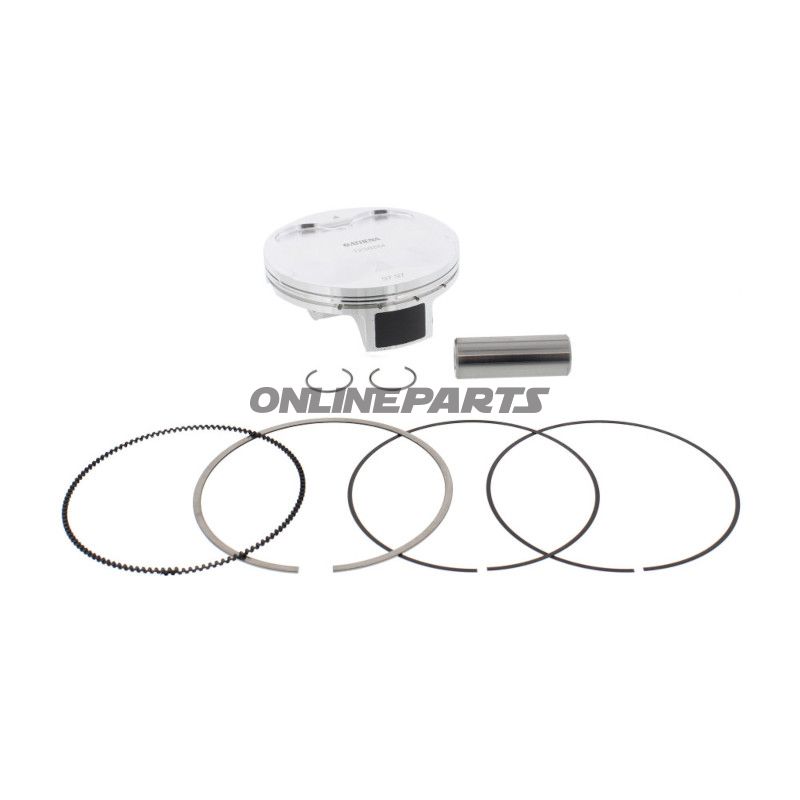 Der Kolbendurchmesser beträgt 97,97 mm, was eine Oversize-Variante ist, die es dem Motor ermöglicht, mehr Leistung bei höheren Verdichtungsverhältnissen zu erzeugen. Dieser Kolbensatz besteht aus geschmiedetem Aluminium, was eine höhere Temperaturbeständigkeit und größere Haltbarkeit im Vergleich zu traditionellen gegossenen Kolben gewährleistet. Die geschmiedete Konstruktion führt auch zu einer erheblichen Gewichtsreduktion, was beim Motocross-Fahren von Vorteil ist, wo jedes Gramm zählt.