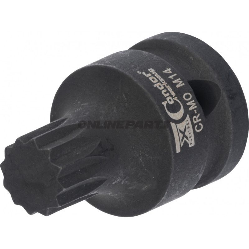 Produktübersicht: Dieser Krafterinsatz (MPN: 605.08.11, GTIN: 4037374025076) ist ein 1/2" Drehwerkzeuginset mit Multi-Zahn-Profil (sechskantig / XZN) in M14-Größe und 40 mm Einsatzschaft. Er ist für den Einsatz mit Schlagmaschinen und Drehmomentwerkzeugen zum Lösen und Anziehen von Profilschrauben an Fahrzeugen konzipiert, einschließlich Anwendungen an Fahrwerkträgern, Bremsträgern, hinteren Bremssätteln, Stoßdämpfern und anderen Schraubverbindungen, bei denen das XZN/Multi-Zahn-Profil vorkommt.