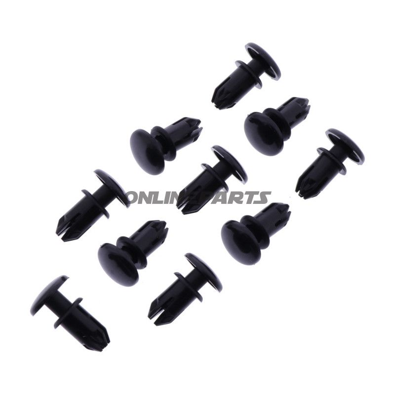 Diese Nieten bestehen aus Kunststoff, was sie leicht und korrosionsbeständig macht. Das bedeutet, dass sie in verschiedenen Umgebungen eingesetzt werden können, ohne ihre Funktionalität zu verlieren. Die Nieten sind so konzipiert, dass sie in Löcher eingesetzt werden, wo sie sich bei der Installation ausdehnen und eine sichere und enge Passform schaffen. Dies ist besonders wichtig bei Motorrädern, wo Vibrationen und Bewegungen die Stabilität der Komponenten beeinträchtigen können.