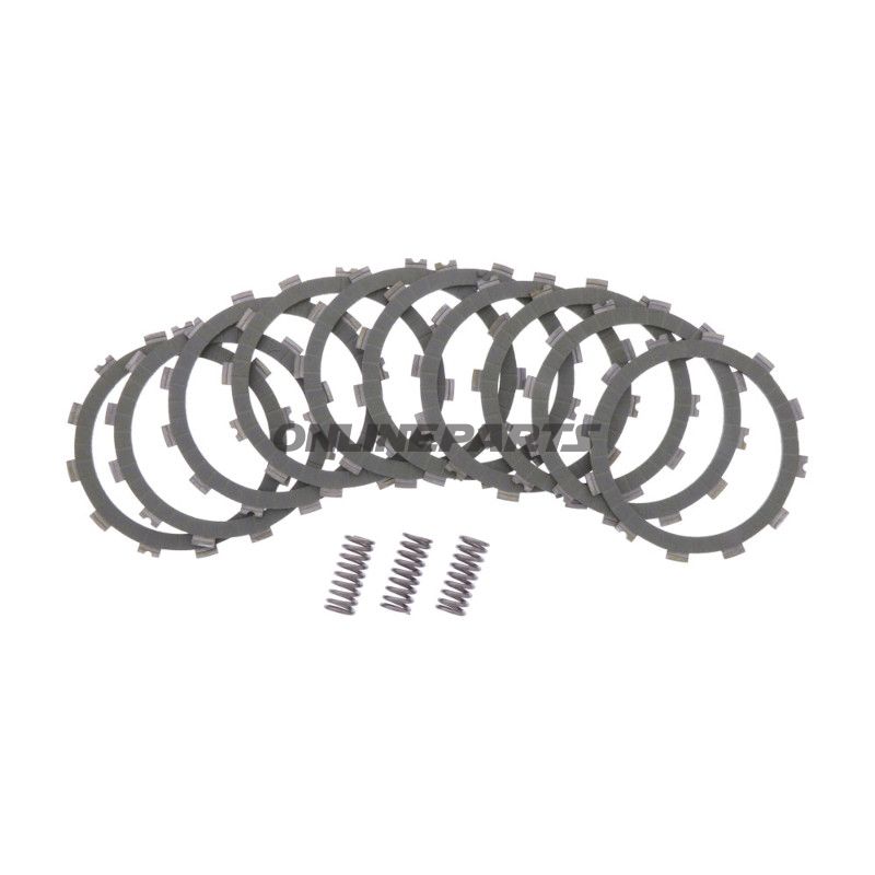 Das Aramid-Material, das in diesen Kupplungsplatten verwendet wird, hat den Vorteil, dass es sowohl leicht als auch stark ist, was eine hohe Widerstandsfähigkeit gegen Wärme und Abnutzung bietet. Dies macht sie geeignet für sowohl Straßen- als auch Rennstreckeneinsätze, wo zusätzliche Haltbarkeit unter harten Bedingungen erforderlich sein kann. Die mitgelieferten Federn sind so konzipiert, dass sie optimal mit den Platten zusammenarbeiten und eine zuverlässige und gleichmäßige Kupplungsreaktion gewährleisten.