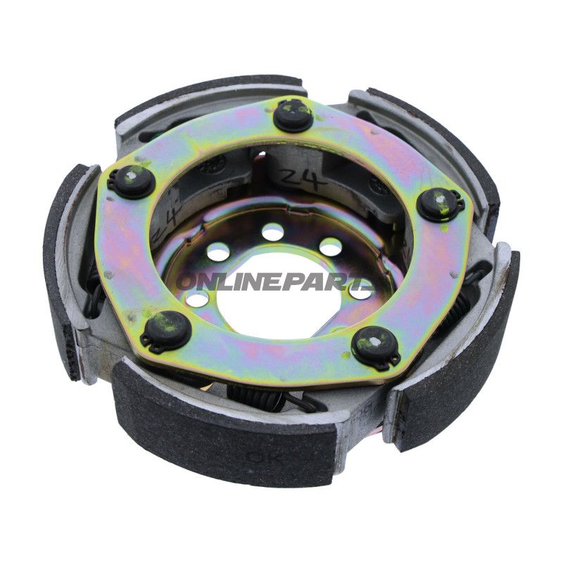 Diese Kupplung ist ein originales Ersatzteil (OE), das für die Kraftübertragung des Antriebsstrangs auf größeren Scootern und dreirädrigen MP3-Modellen konzipiert wurde. Sie wird im Variatorgehäuse/Zentrifugal-Antriebsstrang zwischen dem Kurbelgehäuse des Motors und dem Antriebsrad am Hinterrad montiert; funktionell übernimmt sie die Belastung beim Anfahren, Beschleunigen und beim Fahren mit variabler Last, wobei sie einen gleichmäßigen Kontakt zwischen dem Drehmoment des Motors und dem Hinterradantrieb gewährleisten soll.