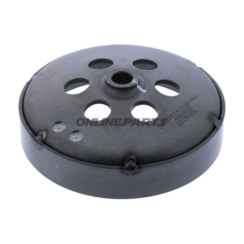 Dieses Kupplungsglockengehäuse ist ein originales Ersatzteil, das für die automatischen Variatorenkupplungen hergestellt wurde, die sich hinten am Motor befinden und das Drehmoment von der Kupplungseinheit des Motors auf das Hinterrad übertragen. Die Glocke umschließt die Kupplungsbeläge und fungiert als Kontaktfläche und Schwungrad im primären Antriebssystem von Scooter- und Kleinmotorradplattformen. Die korrekte Passform und Konzentrität sind entscheidend für einen gleichmäßigen Kraftübertrag, reduzierte Vibrationen und ein einheitliches Kupplungsengagement.