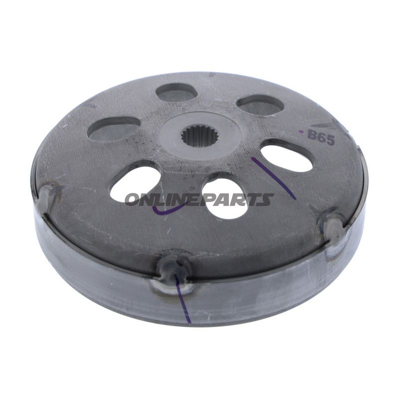 Beschreibung: Dieses Kupplungsglockengehäuse (OEM-Ersatzteil, Marke angegeben als "Originalersatzteil", MPN 745.10.44, GTIN 000000296892) ist eine original montierte Art von Glocke für Variokupplungen an Kleinstadt-/Scootermotoren. Ihre Hauptfunktion besteht darin, die Drehung des Motors in die Antriebskraft umzuwandeln, die von der Variator-/Antriebsfläche und den Kupplungsbacken über die Mechanik der Trommel/beweglichen Elemente auf das Hinterrad übertragen wird. Die Kupplungsglocke umschließt die Kupplungsbacken und fungiert sowohl als Träger als auch als Wärmeableiter während des Betriebs.