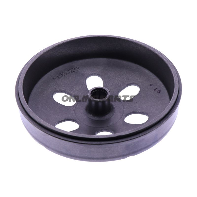 - Es fungiert als Gehäuse und Wärmeleiter für die Kupplung; die innere Oberfläche ist bearbeitet, um einen gleichmäßigen Grip von den Kupplungsbelägen zu gewährleisten, und das äußere Design hilft, Wärme abzuleiten.