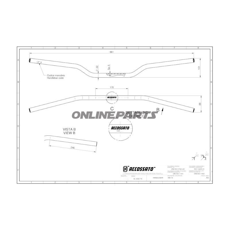 Lenker Alu 22 mm schwarz Accossato fra Accossato