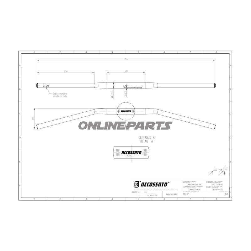 Produkt: Accossato Lenker Alu 28 mm, Modell MPN 730.77.08, GTIN 8057809154320. Hergestellt von Accossato in eloxiertem Silber.