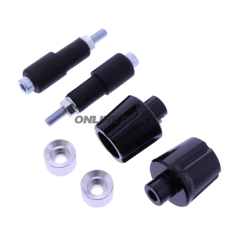 Produkt: Lenkerhalter aus Aluminium von Daytona (GTIN: 4909449595961, MPN: 730.14.06). Diese Art von Lenkerhaltern ist konzipiert, um offene Lenkerhalter zu beenden und eine stabile, mechanische Optik am Lenkerrohr des Motorrads mit einem Innendurchmesser von 14–19 mm zu gewährleisten.