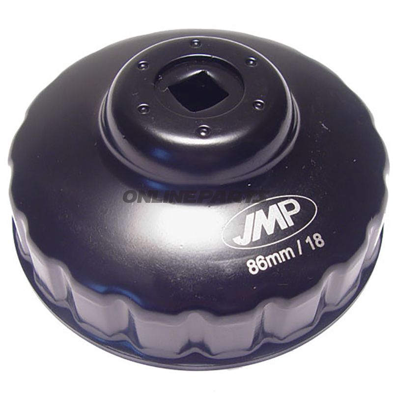 Produktübersicht: Dieser Ölfilterschlüssel von JMP (MPN: 614.38.38, GTIN: 4043981018004) ist zum Lösen und Anbringen von zylindrischen Ölfiltern mit 86 mm Durchmesser und 18 inneren Flächen konzipiert. Das Werkzeug ist für den professionellen Einsatz ausgelegt und eignet sich für Fahrzeuge wie bestimmte Ausführungen des VW Golf, Audi A6 TDi sowie ausgewählte Modelle von Peugeot und Citroën, bei denen Filtertyp und Maße 86 mm / 18-Eck entsprechen.