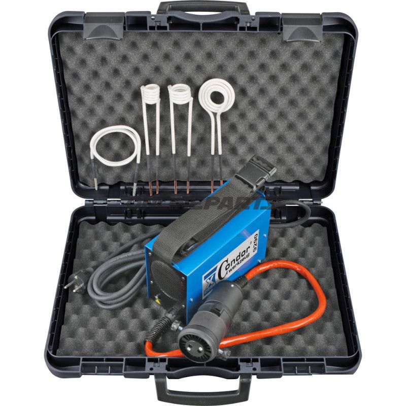 Das Gerät ist kompakt und tragbar mit einem Gesamtgewicht von ca. 4,5 kg. Das Set enthält vier Induktionsspulen mit starkem Draht (ca. 4 mm), dimensioniert für lange Lebensdauer bei professioneller Nutzung. Konstruktion und Bauteilwahl zielen auf Haltbarkeit und wiederholten Gebrauch in Werkstattumgebung ab; Elektronik und Spulen sind mit Temperatur- und Stromsteuerung für konstante, kontrollierte Leistungsabgabe ausgeführt.