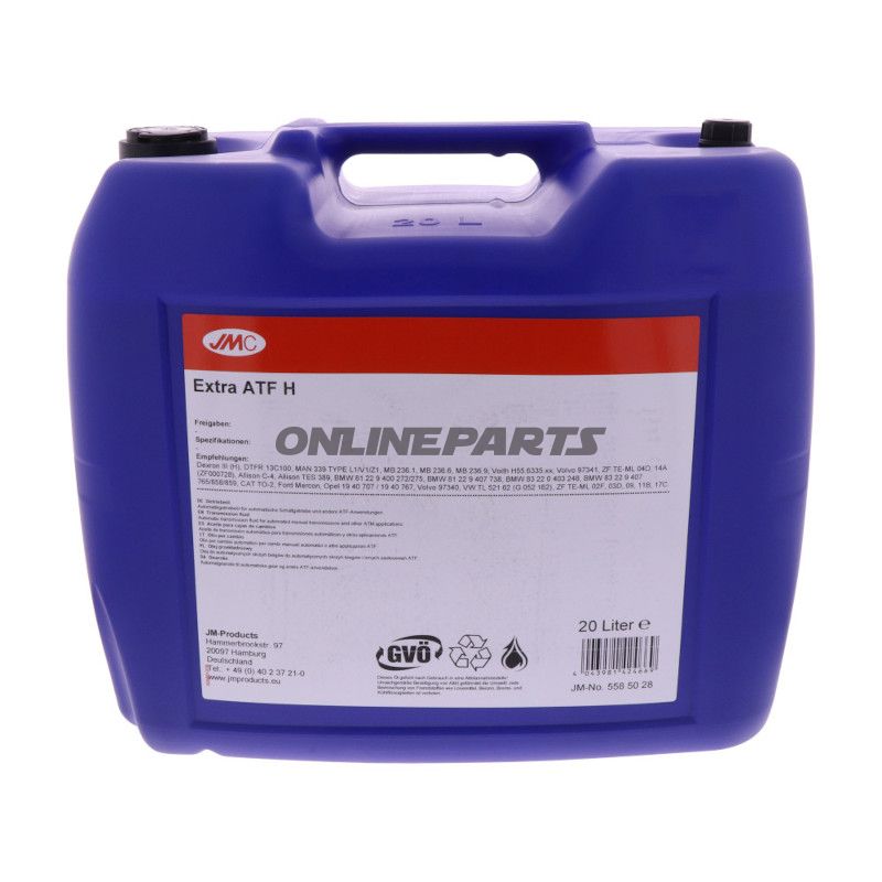 Getriebeöl ATF H JMC 558.50.28 Automatikgetriebe- och Servolenkungsöl. ATF H, synthetisches Öl, 20-L-Behälter (im Titel angegeben).