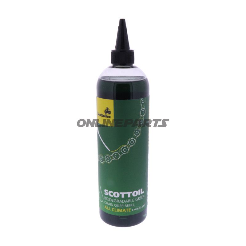 Produkt: Scottoiler Ketteöl 500 ml (grün) — bestimmt für den Einsatz in Scottoiler-Schmierungs-systemen in wärmeren Klimazonen.