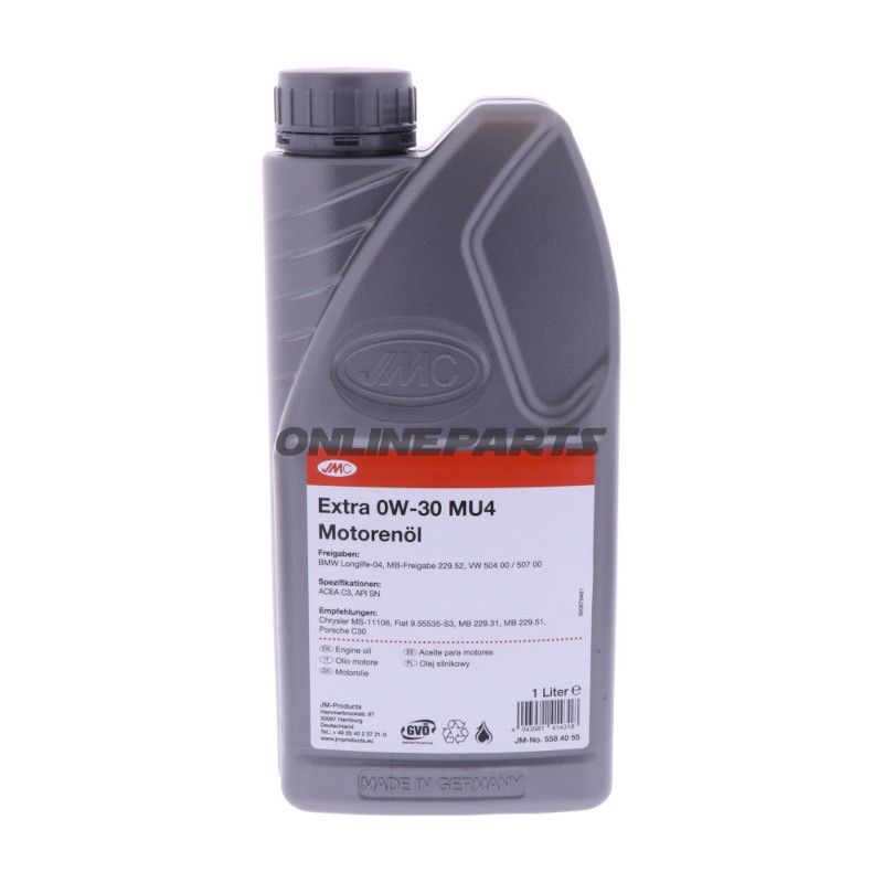 Produkt: JMC Motoröl 0W‑30 MU4, 1 Liter. GTIN: 4043981414318. MPN: 558.40.55. Brand: JMC.