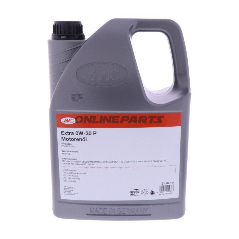 Motoröl JMC 558.40.61 0W-30, 5L Motoröl för Benzin und Diesel. Geringe Verdampfungsverluste, niedrige Sulfatasche und optimierter Kraftstoffverbrauch (ACEA C2).