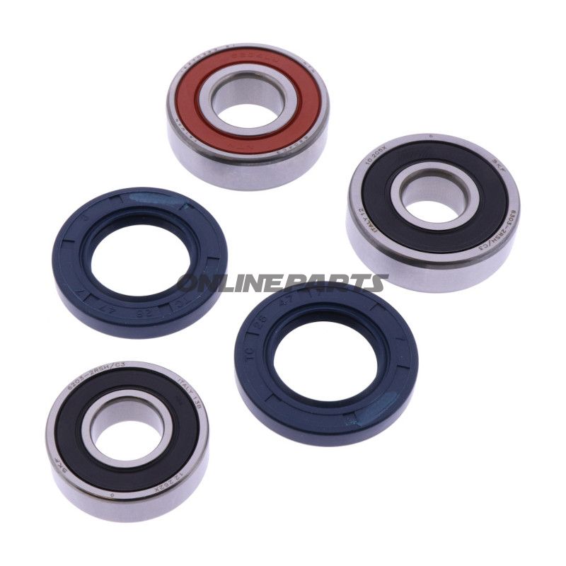 Der Radlagersatz ist im Rad des Motorrads platziert und spielt eine wesentliche Rolle bei der Unterstützung und Erleichterung der Radrotation. Die korrekte Funktion der Radlager ist entscheidend, um den Verschleiß von Reifen und anderen Komponenten zu minimieren, was wiederum zu einem gleichmäßigeren und sichereren Fahrerlebnis beitragen kann.