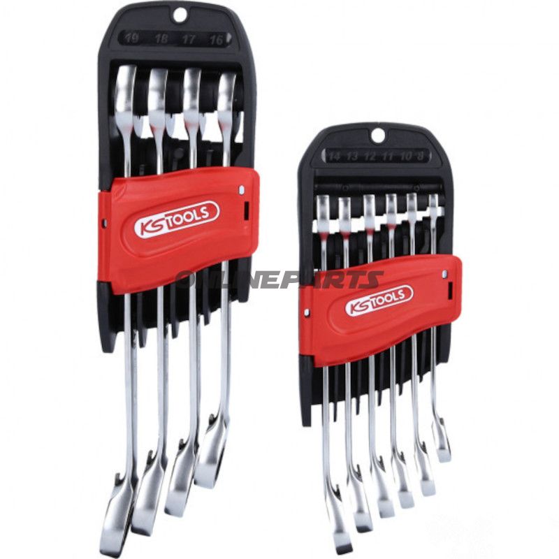 KS Tools Schraubenschlüssel-Satz (MPN: 604.01.50, GTIN: 4042146641354) ist ein 10-teiliges Set von Kombinationsschlüsseln mit Backen- und Ringseite, ausgeführt mit umkehrbarem Schraubmechanismus. Das Set richtet sich an Mechaniker und routinierte Motorradbesitzer, die eine präzise Drehmomentübertragung und schnelles Arbeiten in engen Situationen benötigen.