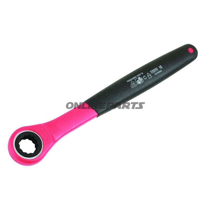 Der isolierte Ratschenringschlüssel 14 mm von HBT (MPN 604.68.84, GTIN 4251694650637) ist ein spezialisiertes Werkzeug für Fachleute, die sowohl mechanische Zuverlässigkeit als auch elektrische Isolation bei Arbeiten an Hochspannungsfahrzeugen benötigen.