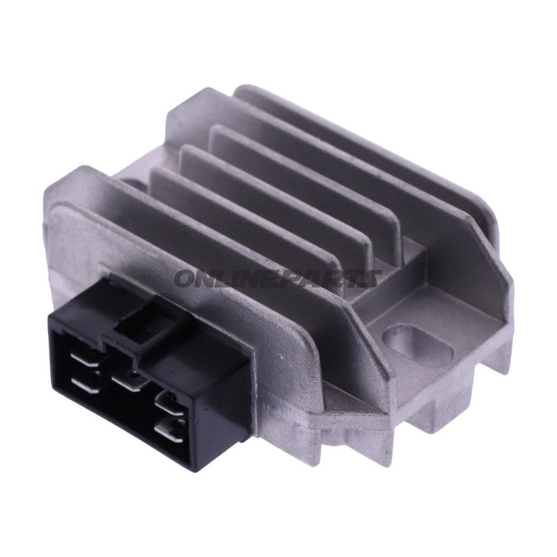 Dieser Regler/Gleichrichter steuert und stabilisiert die Gleichspannung des Generators und sorgt für eine korrekte Funktion des Ladesystems. Er wird typischerweise in der Nähe von Rahmenmontagen hinter der Karosserie oder unter dem Sitz platziert, wo er von der Wechselspannung des Stators über Befestigungsbolzen und Steckverbindungen betrieben wird. Ein funktionsfähiger Regler/Gleichrichter verhindert Überladung oder Unterspannung für die Batterie und elektronische Geräte.