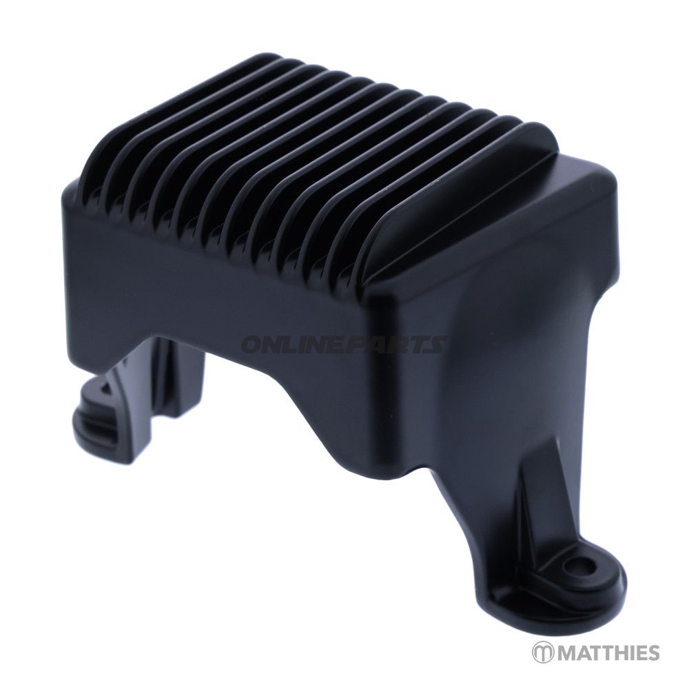 Dies ist ein Regler/Gleichrichter von JMP, Referenz 700.40.79 (auch genannt Controller/Rectifier JMP alternativ 7003547). Ein Regler/Gleichrichter vereint die Funktion, den Wechselstrom von der Statorwicklung des Motors in Gleichstrom umzuwandeln und gleichzeitig die Ladespannung zu regulieren, sodass Batterie und elektrisches System während des Betriebs eine stabile Spannung erhalten.