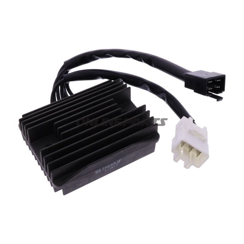 Dieser Regler/gleichrichter steuert und stabilisiert die elektrische Ladung von Generator/Alternator zum Akku und zum elektrischen System des Fahrzeugs. Er wird typischerweise in der Nähe der elektrischen Einheiten des Motors oder unter dem Sitz/seitenverkleidung montiert, abhängig von Rahmen- und Kabelverlauf, und seine Funktion besteht darin, Wechselstrom vom Generator in Gleichstrom umzuwandeln sowie das Spannungsniveau zu begrenzen, um die Batterie, die Steuerungselektronik und die Verbraucher zu schützen.