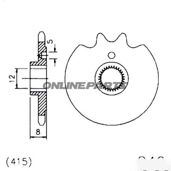 Ritzel Esjot 13 Z, Teilung 415, brandno 20-0846-13 Kompatibel mit mehreren Modellen (Baujahr je nach Modell). Innendurchmesser 12/13 mm.