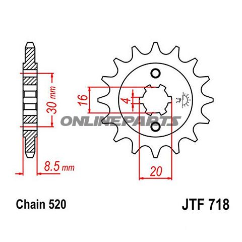 Ritzel JT Sprockets JTF718.13 13 Zähne, 520 grob tandet. Innendurchmesser 16/20 mm. Passend für Husqvarna CR 125 / WR 125 1992–1994.