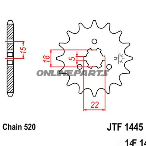 Ritzel JT Sprockets JTF1445.14 14 Zähne, Teilung 520 grob. Innendurchmesser 18/22 mm. Passend u.a. für Kawasaki KX 125 (1994–2008).