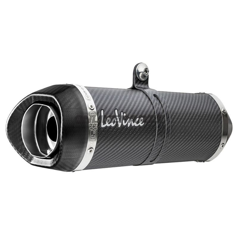 Ein bemerkenswertes Merkmal dieses Modells ist die Endkappe, die aus hitzebeständigem Kohlenstoff gefertigt ist. Dieses Teil ist darauf ausgelegt, den hohen Temperaturen standzuhalten, die während der Fahrt erzeugt werden, und verleiht dem Schalldämpfer gleichzeitig einen aggressiven und modernen Ausdruck. Die Rahmenhalterungen des Schalldämpfers bestehen ebenfalls aus Kohlenstoff, was zusätzlich zur Stärke und dem geringen Gewicht des Produkts beiträgt.